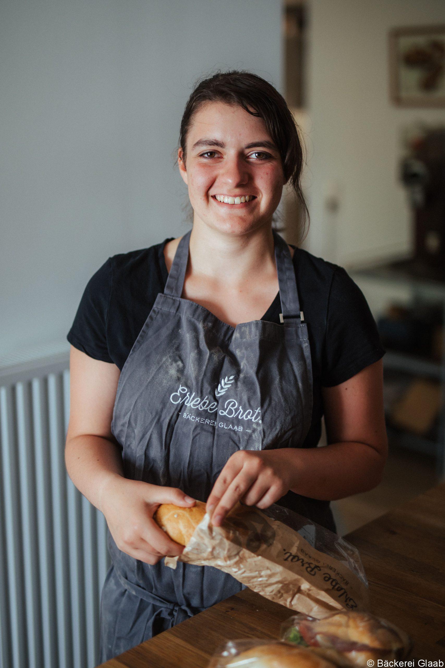Die Bäckerei Glaab ist eine ganz besondere Bäckerei. Jacqueline mag, dass hier vieles selbst gemacht wird und sie die unterschiedlichsten Aufgaben kennenlernen kann. Die 18-Jährige schätzt auch die familiäre und herzliche Atmosphäre am Arbeitsplatz. Der gute Zusammenhalt im Team ist ihr auch sehr wichtig.