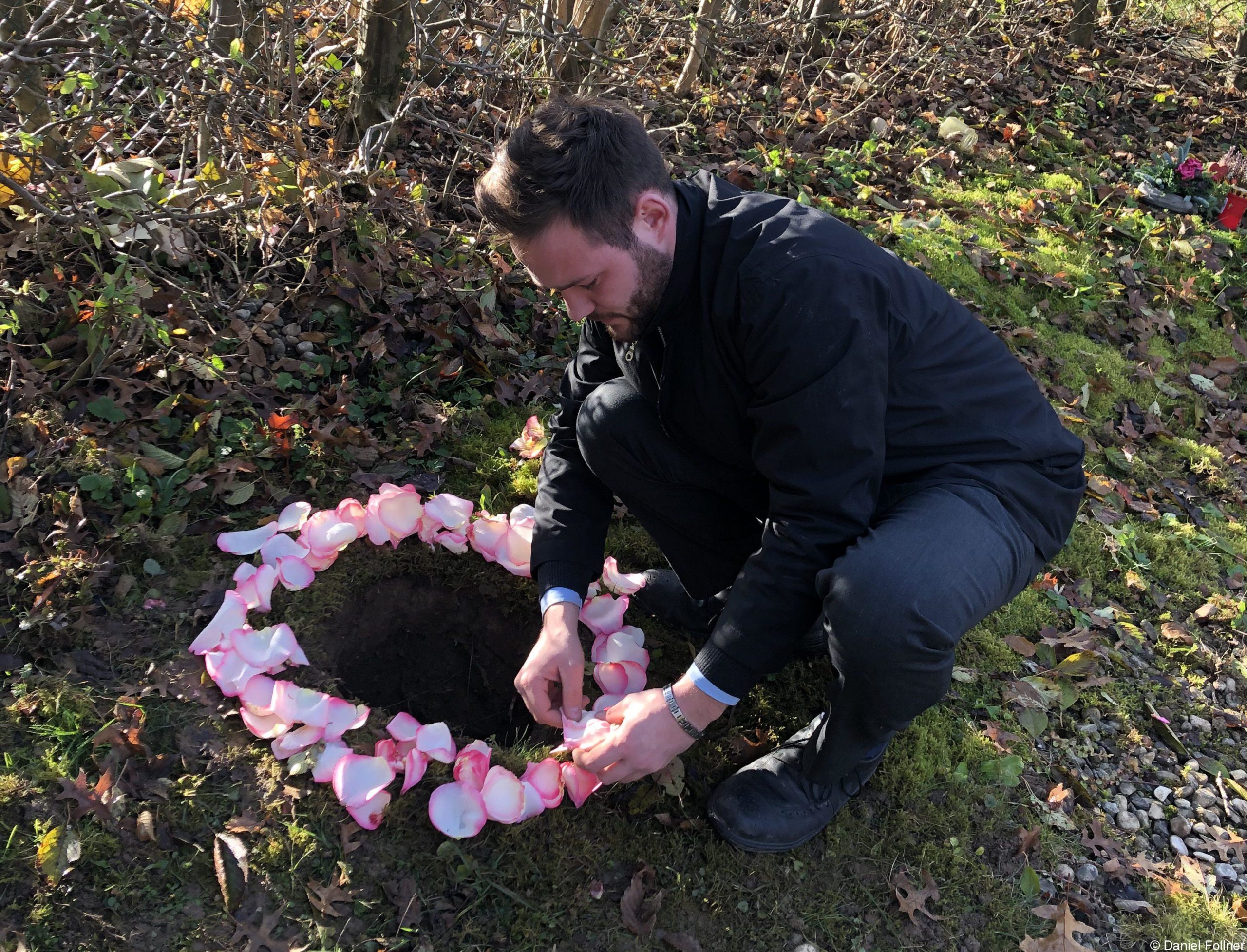 Angefangen hat für Daniel alles 2014 mit dem Tod seines Großvaters. Damals arbeitete er als Gärtner. Als er nach Hause kam, war der Opa bereits abtransportiert. „Ich konnte mich gar nicht verabschieden“, bedauert Daniel. Dass er nicht wusste, was mit seinem Großvater bis zur Beerdigung passierte, ließ ihm keine Ruhe. Schließlich ging er nachfragen bei einem Bestattungsunternehmen in Ebersberg. Dieser Besuch mündete in einem zweiwöchigen Praktikum, das ihn berührte und begeisterte. Kurzerhand kehrte er der Gärtnerei den Rücken und begann eine Ausbildung zur Bestattungsfachkraft. Heute arbeitet er beim Bestattungsunternehmen Hartl in Prien am Chiemsee.