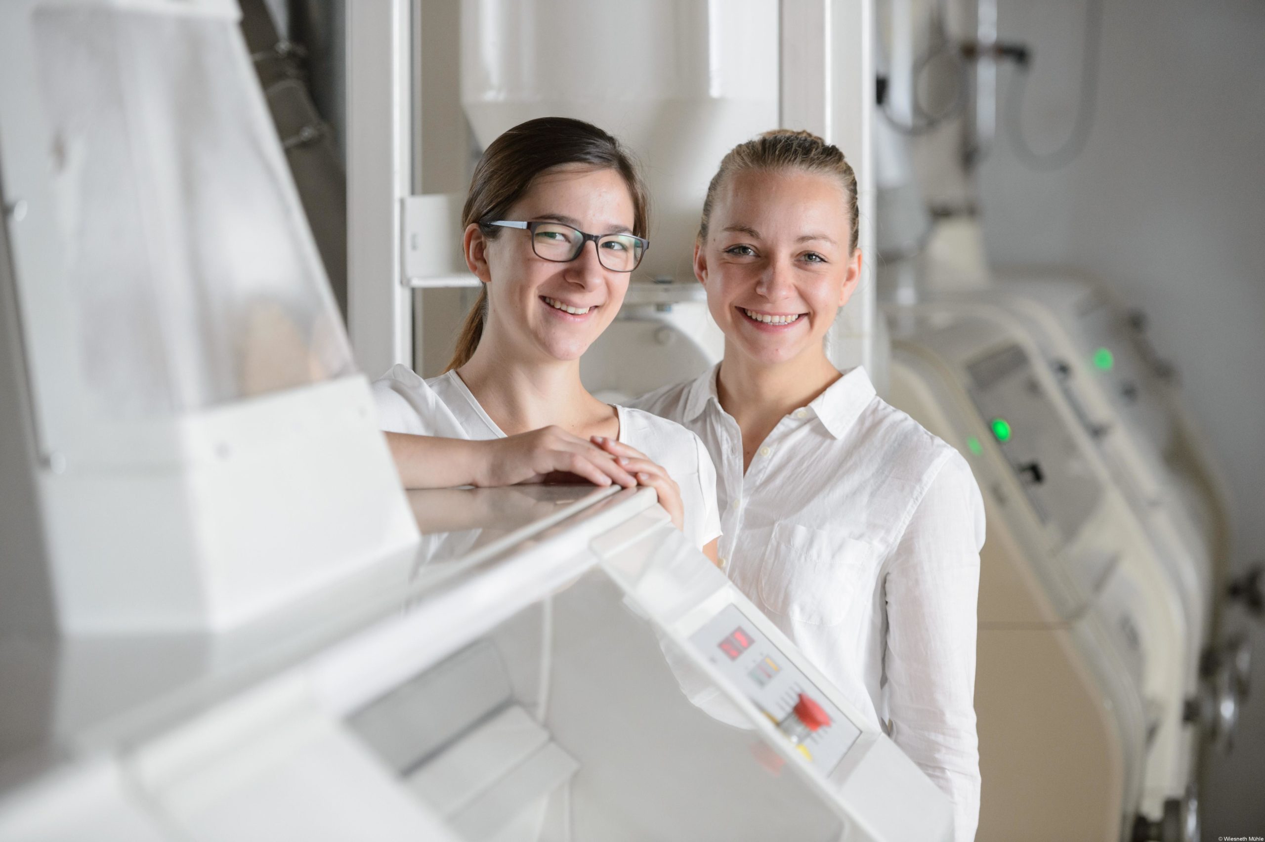 Luisa und Julia Wiesneth sind Schwestern. Die eine hat eine Ausbildung zur Groß- und Einzelhandelskauffrau. Die andere hat als Bankkauffrau gearbeitet. Beide haben danach umgesattelt und sich für eine Ausbildung zur Müllerin in der elterlichen Mühle, der Wiesneth-Mühle in Sambach, entschieden. In diesem Beruf fühlen sie sich angekommen und rundum wohl.