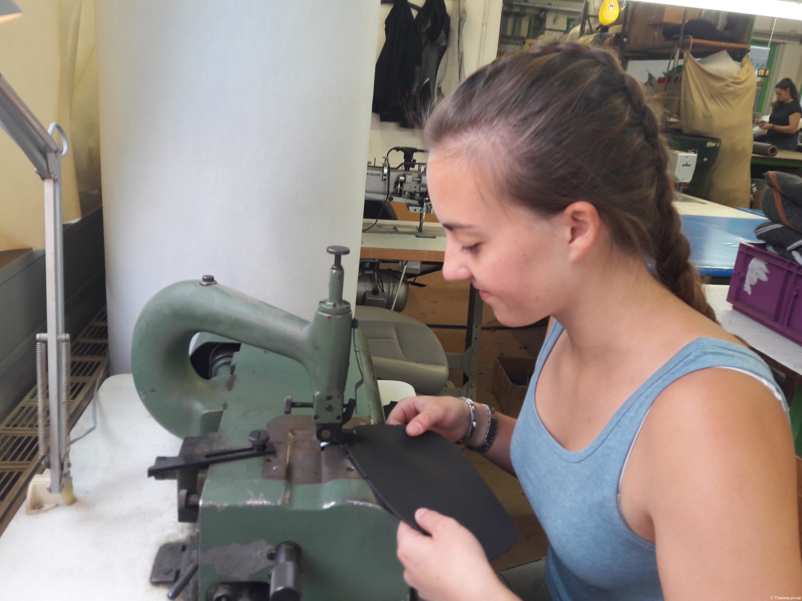 Da steht er, der schöne Wagen. Er hat zwar schon ein paar Jährchen auf dem Buckel und ein paar tausend Kilometer auf dem Tacho, doch der Motor läuft noch bestens. Auch die Farbe hat kaum gelitten. Ein Auto, das ans Herz gewachsen ist und treue Dienste geleistet hat. Wenn da nicht der abgenudelte Fahrersitz wäre. Der Lederbezug ist abgeschabt, vor allem auf der linken Seite, wo man beim Ein- und Aussteigen so gerne mit der vom Geldbeutel ausgebeulten Hosentasche d’rüber scheuert. Außerdem ist die Polsterung weich und schwammig geworden. Der Allerwerteste fällt eher in eine Kuhle als dass er auf einem straffen, ergonomischen Sitz Halt findet. Hier tritt Theresa auf den Plan. Denn das ist genau der Bereich, in dem sie als Fahrzeugsattlerin arbeitet.