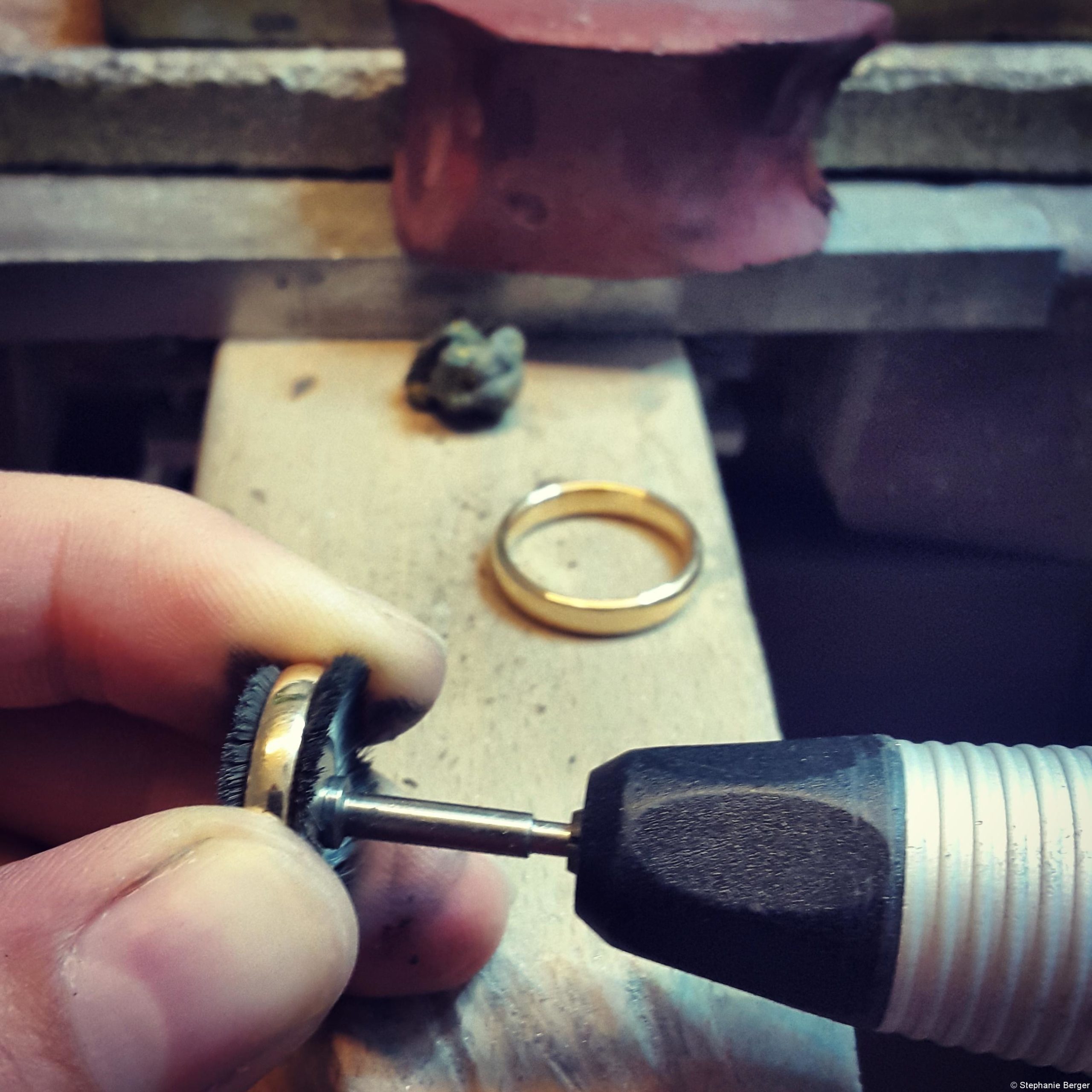 Hallo mein Name ist Stephanie, und ich bin Goldschmiedemeisterin aus Leidenschaft. Mein Weg in diesen Beruf war alles andere als direkt, aber jetzt bin ich sehr froh darüber, den Weg gefunden zu haben. Ich dachte damals nach der Schule ich müsse erst mal was studieren. Schließlich hat man ja auch den Abschluss dafür, und alle anderen machen es ja auch. Ich stellte dann aber bald fest, dass mir das Ganze zu theoretisch ist. Außerdem wusste ich, dass ich sehr gerne mit meinen Händen arbeite, und später eigentlich niemals in einem Büro sitzen will.
