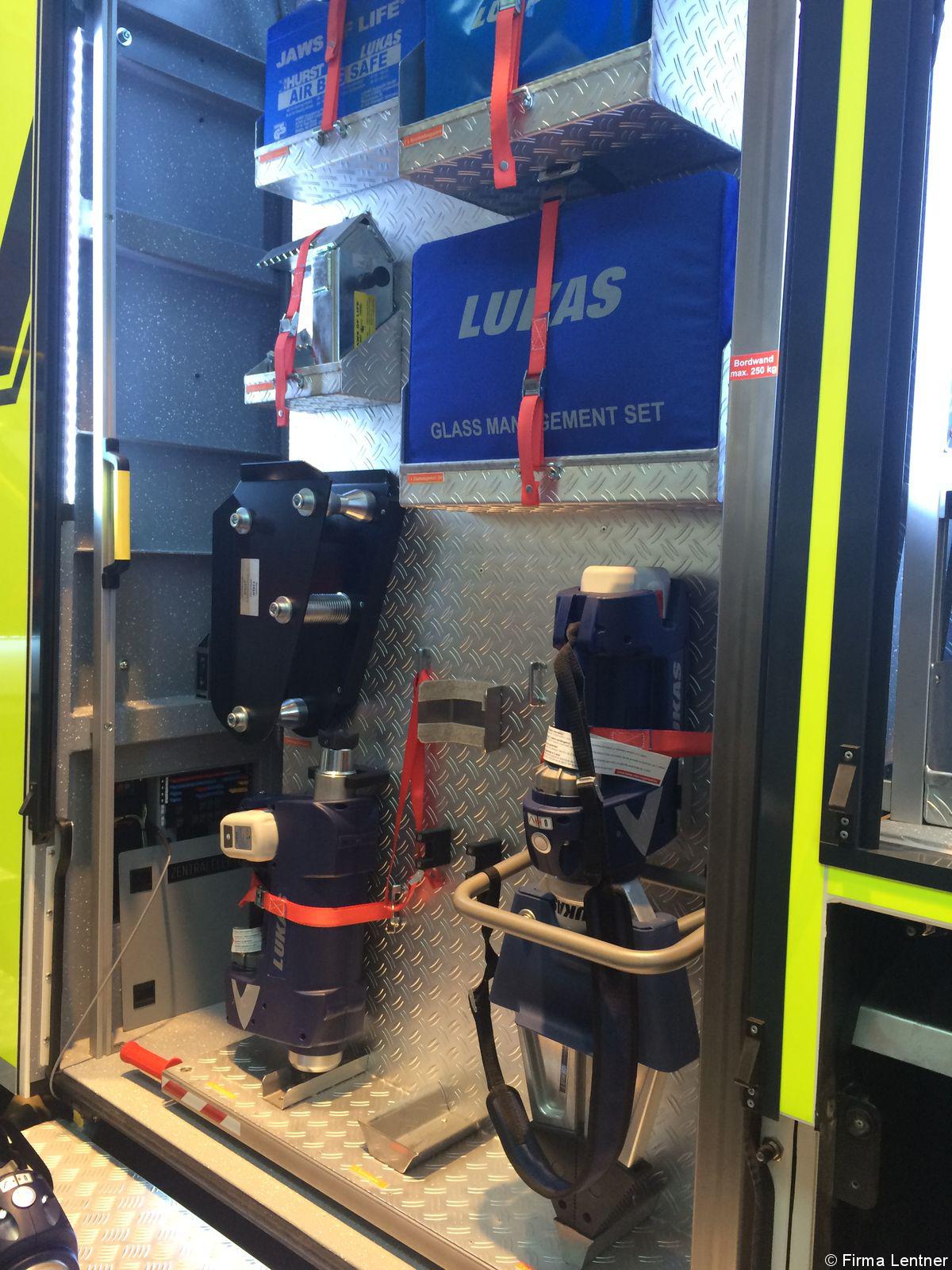 So zum Beispiel die Mannschaftskabine: die Innenverkleidung, die Kunststoffgriffe, der Boden aus Alu-Riffelblech: Der angehende Karosseriebauer Dominik ist sichtlich stolz auf sein Werk, ihm macht sein Beruf einfach Spaß. Aber auch die Unterbauten für die Geräte und Maschinen werden von der Firma Lentner selbst hergestellt und eingebaut. Jede Feuerwehr vor Ort braucht neben Standards wie einen Generator für die unabhängige Stromversorgung der Unfallstelle oder Schneidegeräte für die Bergung, ganz unterschiedliche Ausstattungen. Wenn sie zum Beispiel bei vielen Verkehrsunfällen helfen muss, braucht sie neben Wassertanks auch die Möglichkeit, zusätzlich mit Schaum löschen zu können.