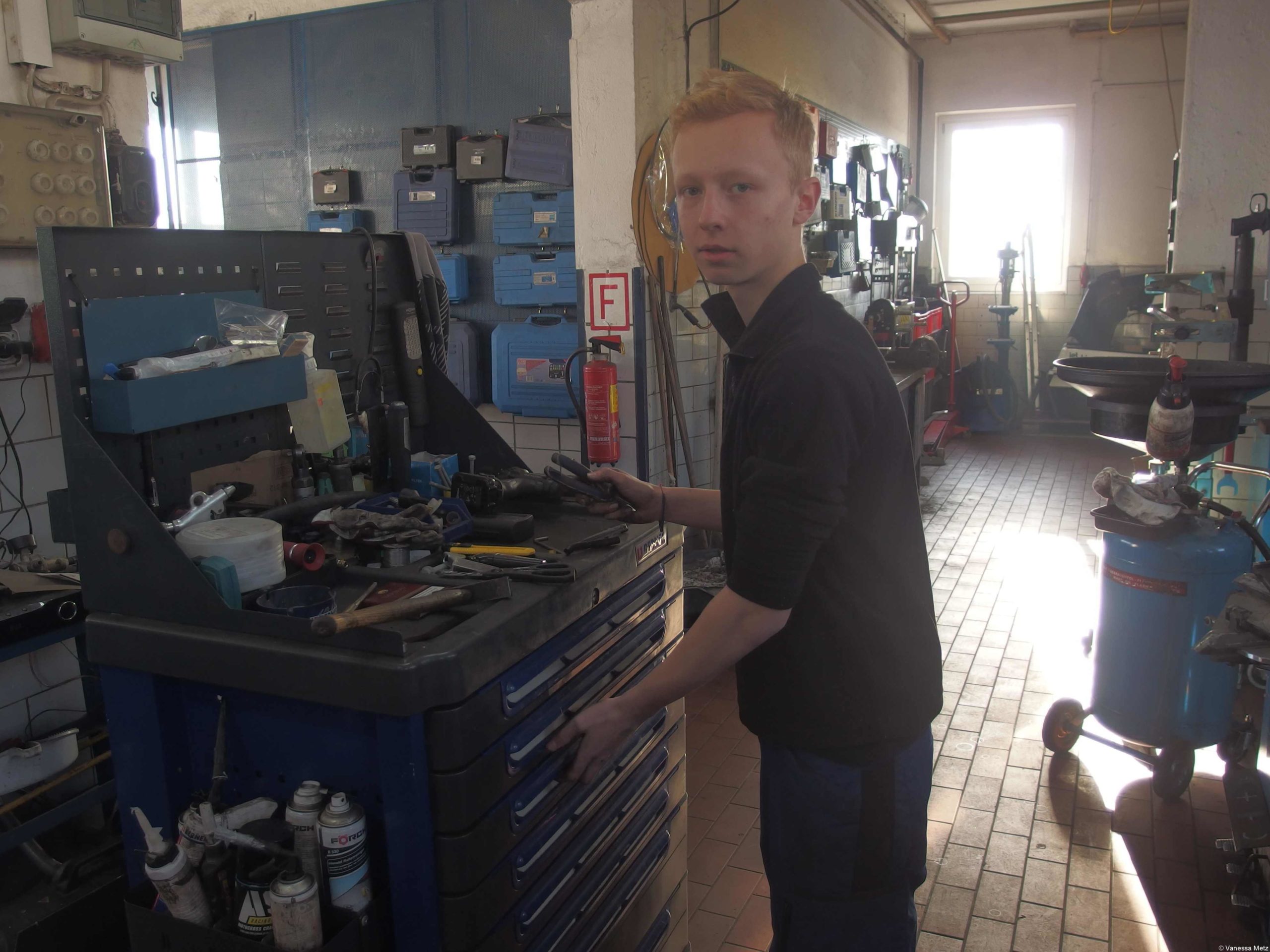 „In der 8.Klasse habe ich einige Praktika gemacht, eins davon in einem Kindergarten. Das hat mir zwar gefallen, aber ein Leben lang würde ich den Job ehrlich gesagt nicht machen wollen. Ein anderes habe ich in einer Kfz-Werkstatt gemacht…das hat mir sofort sehr gefallen. Da habe ich festgestellt, dass mir Tätigkeiten wie Bremsen oder Reifen wechseln oder Motoren ein- und ausbauen sehr viel Spaß machen. Außerdem herrscht in dieser Werkstatt ein sehr gutes Arbeitsklima. Deshalb habe ich mich dort sofort für einen Schülerjob beworben.“