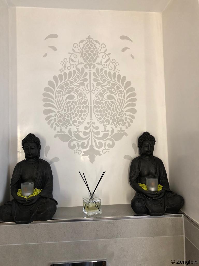 Den Input zu dieser außergewöhnlichen Gestaltungsvariante bekam er über Instagram. Dort hatte ein Malerkollege aus Miami ein Bild von einer solchen Wand gepostet. „Echt stark“, erzählt Philipp. Er nahm Kontakt auf. Bald fachsimpelten die beiden online und auf Englisch über die Technik. Der amerikanische Malerkollege verriet Philipp, dass er einen speziellen Putz aus Italien verwendet. Nach einem Seminar bereichert dieser Putz nun das Angebot des Münchner Malerbetriebs Zenglein von Philipps Vater. Die Kunden sind begeistert.
