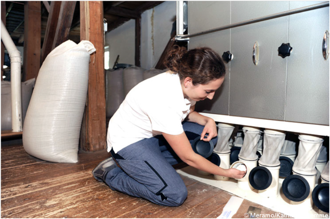 Die Perspektiven als Verfahrenstechnologe/-technologin in der Mühlen- und Futtermittelwirtschaft sind laut Carolina glänzend: „Der Beruf ist ein richtiges Sprungbrett mit tollen Aufstiegsmöglichkeiten“, betont sie. Nach der dreijährigen Ausbildung gibt es die Möglichkeit, den Meister draufzusatteln und anschließend den Techniker, aufbauend auf den Meister. Die Inhalte der Ausbildung klingen ziemlich technisch: Labor- und Backtechnik, Maschinenkunde, Elektronik. Für Carolina kein Problem! Ihr gefällt an ihrem Job, dass sie nicht den ganzen Tag im Büro sitzt und von der Annahme des Getreidekorns bis zum fertigen Produkt Mehl ganz nah dabei ist.