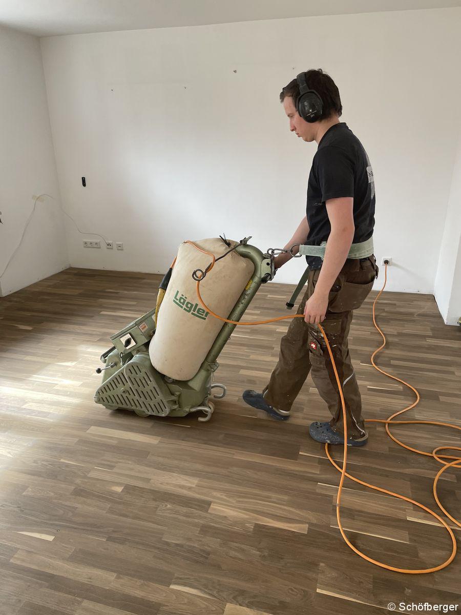 Zu Beginn seiner Ausbildung bei Parkett Schmidt in Berglern durfte Felix gleich an der Erneuerung eines historischen Parketts mitarbeiten. Das hat ihn ziemlich gehypt. „Der Boden befand sich in einem denkmalgeschützten Gebäude auf der Praterinsel in München“, erzählt er. Deshalb musste er genauso wieder hergestellt werden wie er war. Felix und seine Kollegen haben also jedes einzelne Stäbchen vorsichtig entfernt und die Ränder geglättet. Danach wurde alles wieder fein säuberlich zusammengesetzt, geschliffen und versiegelt.
