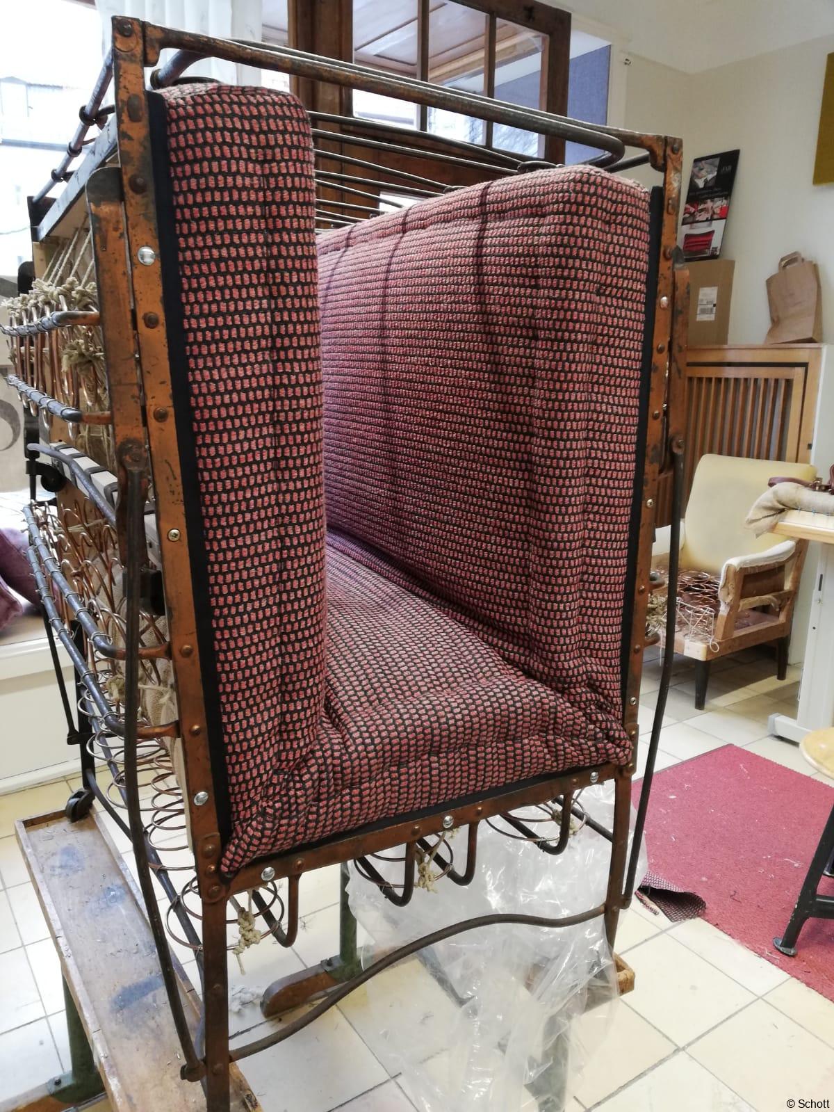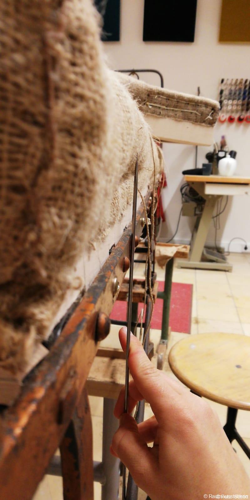 Eine richtige Herausforderung ist ihr begegnet, als sie privat an ein Klappbett aus dem 18. Jahrhundert kam. „Zuerst einmal musste ich untersuchen, wie der Mechanismus funktioniert“, erzählt Laura. Die Schnürung war kompliziert. So etwas war ihr bis dahin in ihrer Ausbildung noch nicht untergekommen. Sie hat sich nicht abschrecken lassen, im Gegenteil. Deshalb schmückt das außergewöhnliche Möbelstück heute generalüberholt und stilgerecht gepolstert das Wohnzimmer ihrer Mutter.