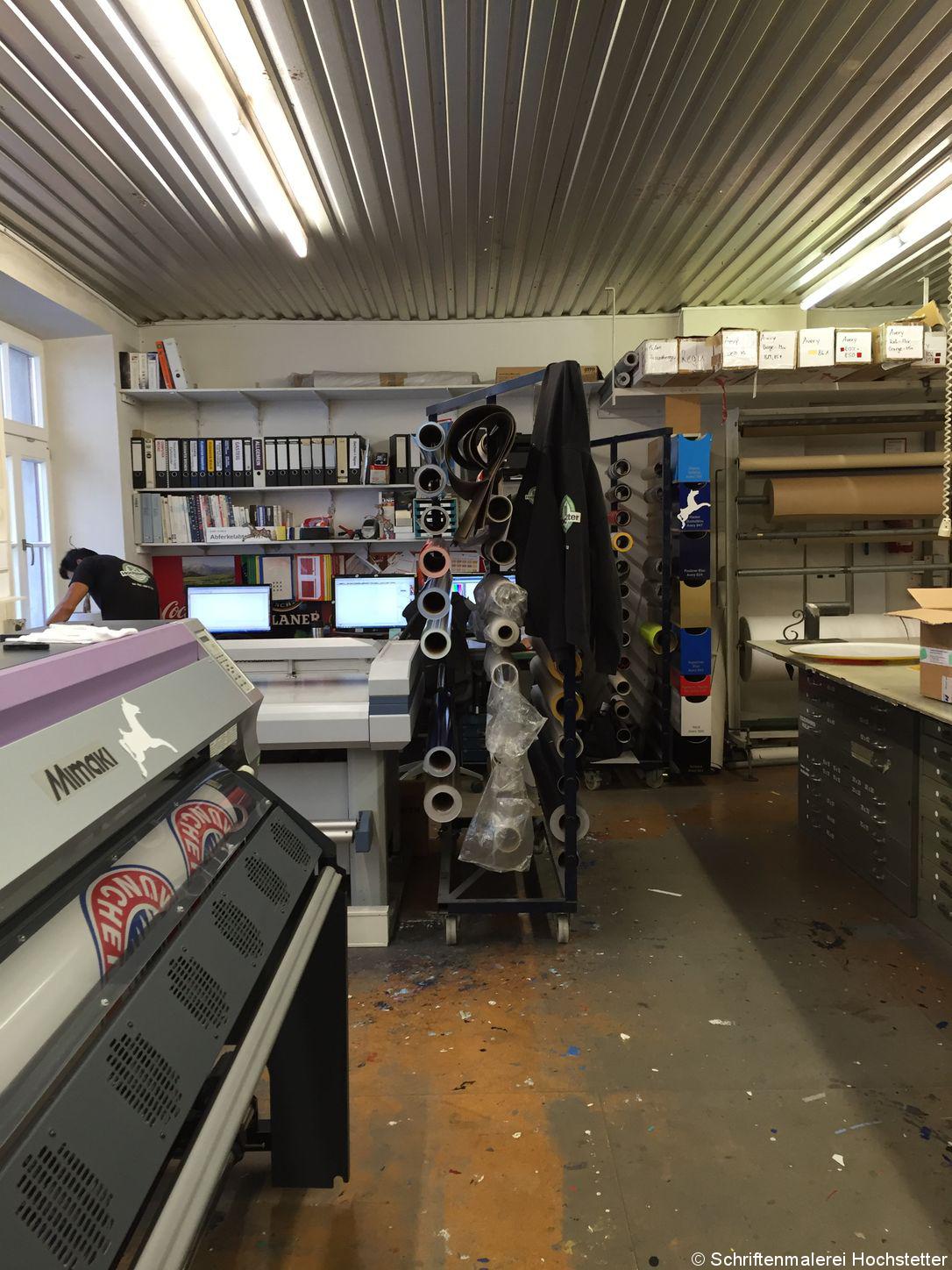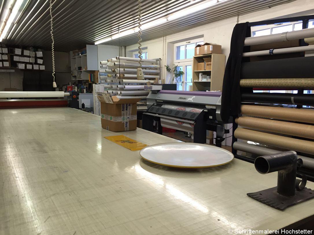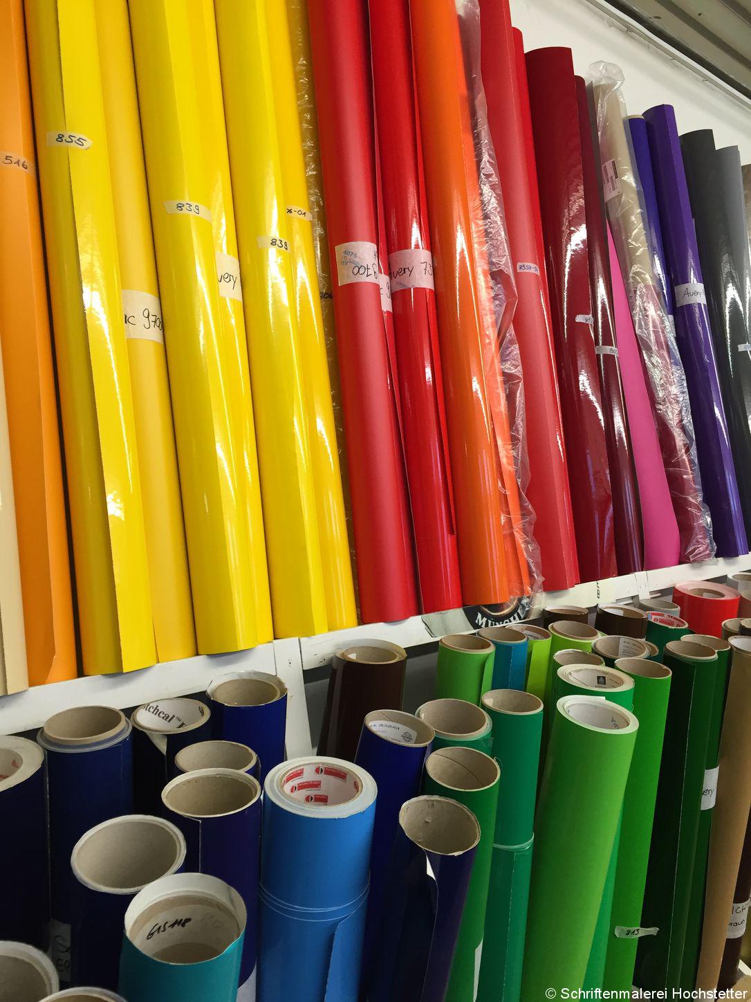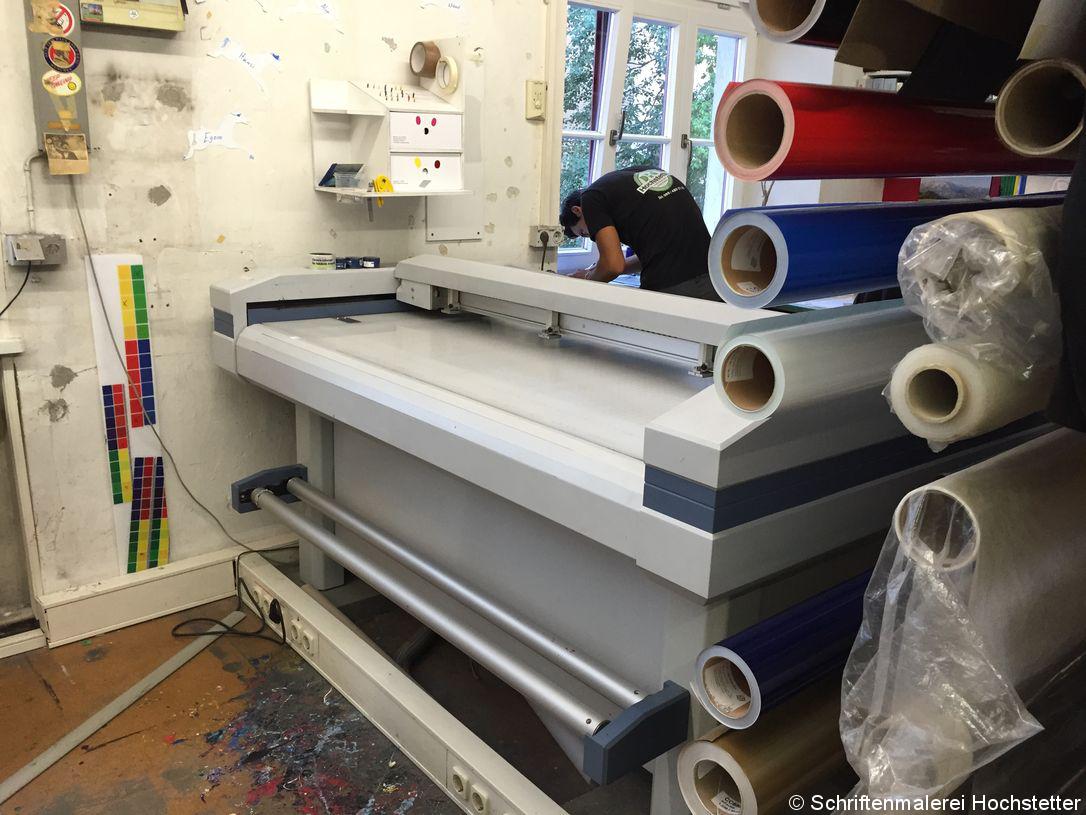 Mit nahezu allen Materialien arbeiten wir, Plastik, Kunststoff, Stoffen, Markisen, Glas, Fassaden werden bemalt, Autos beklebt … ich könnte endlos weitermachen. Hier gibt es fast keine Grenzen. Da sich fast alle Schilder draußen befinden, muss das Material unbedingt wetterfest sein.