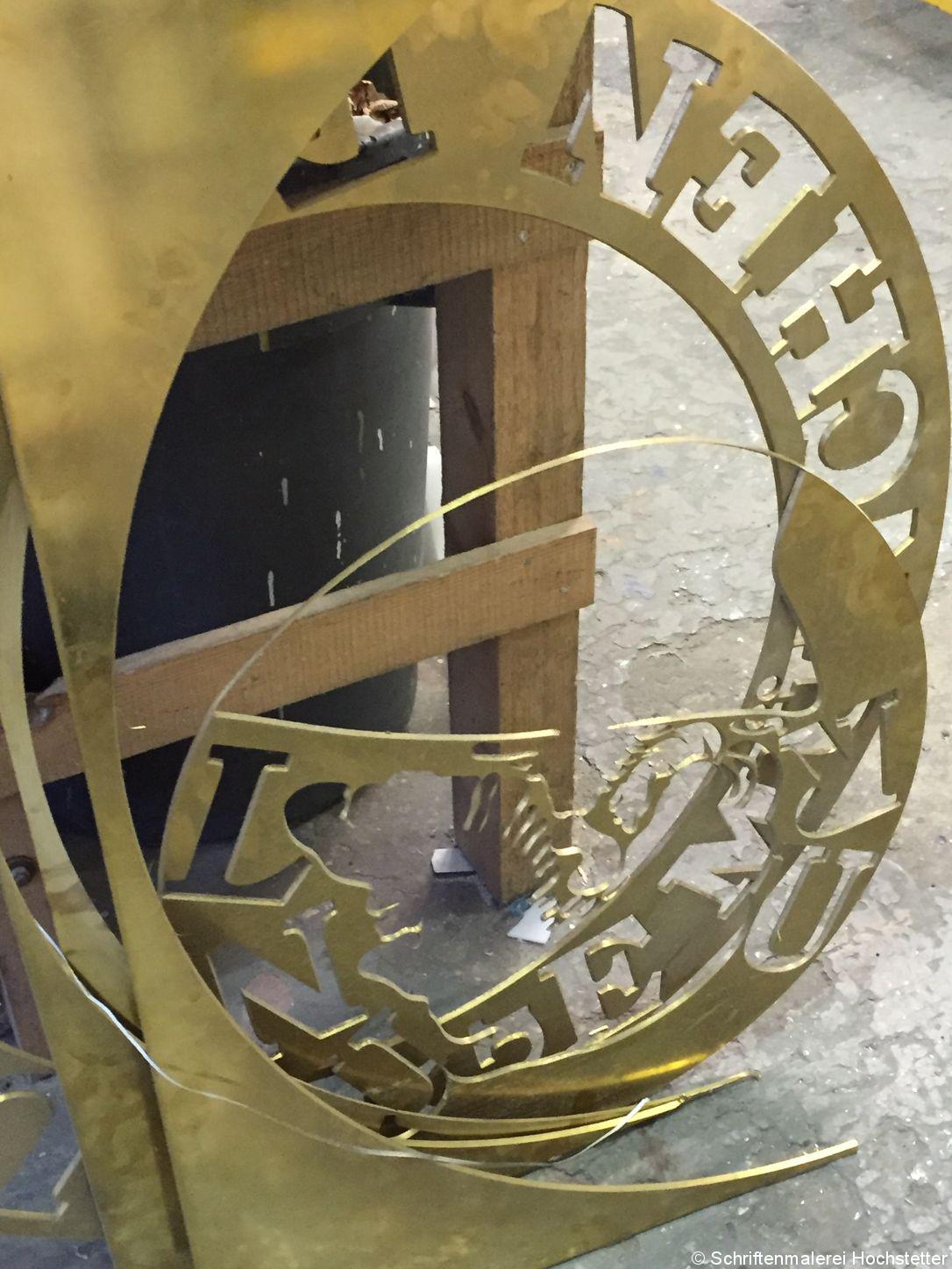 Ein Herzensauftrag ist die Außenbeschriftung des Traditionswirtshaus „Donisl“ am Marienplatz. Das wird ja aktuell gerade saniert. Hier wollte man eine Außenbeschriftung, die sich sowohl klassisch als auch modern präsentiert. Und das ganz Besondere und natürlich auch eine Herausforderung für den Schilder- und Lichtreklame-Bereich ein Blattgold-Überzug! Hier haben wir mit 3D gearbeitet, damit der Schriftzug sich pyramidenförmig von der Hausfassade abhebt. Mit einer Hintergrundbeleuchtung, die die Fassade anstrahlt und zum Blattgold passt. Für mich ist dies ein besonderer Auftrag! Wir haben hier mit ursprünglichen Techniken gearbeitet, so dass der Betrachter zuerst die historische Gestaltung wahrnimmt und beim 2. Blick die Moderne entdeckt! Eine echte Herausforderung!
