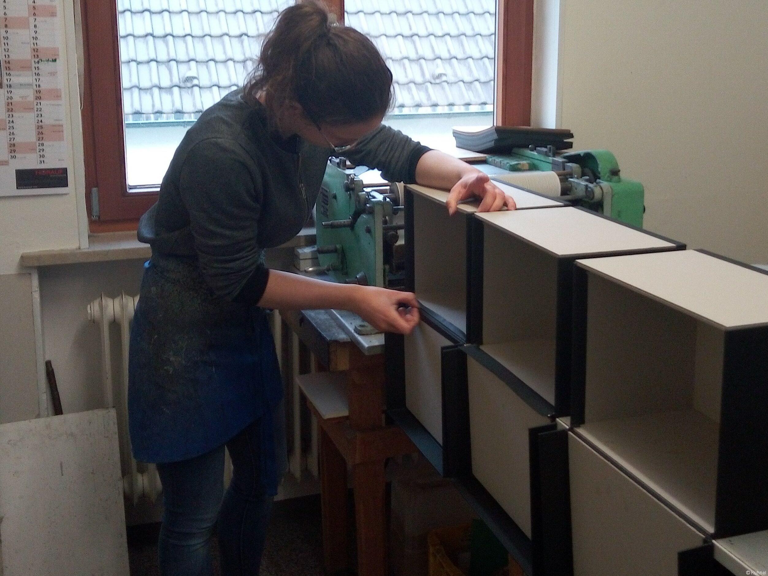 Zu den Highlights deines Handwerks zählt dabei das Einbanddesign. Für diese Aufgabe solltest du Geschick und technisches Verständnis mitbringen. Mit Hilfe dieser Eigenschaften stellst du Zeitschrifteneinbände, Kästen und Kassetten aus verschiedenen Materialien her. Zu deinen Aufgaben als Buchbinder gehört es auch, alte Bücher wieder nutzbar zu machen und Bilder in den richtigen Rahmen zu bringen. Zudem fertigst du unter anderem Gold- und Farbschnitte an und kümmerst dich um Prägungen.
